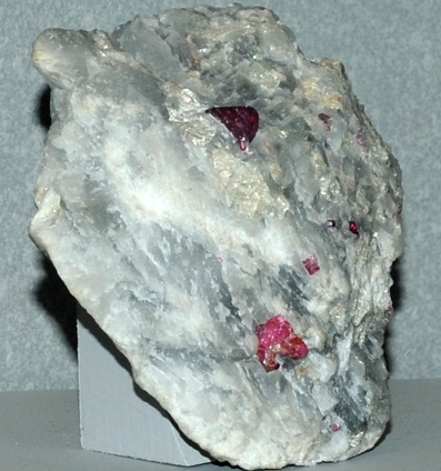 This sample is spinel with calcite and is from Mogok, Burma. It is about 7x7 cm.