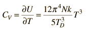 The specific heat expression which arises from Debye theory can be obtained by taking the derivative of the energy expression above.